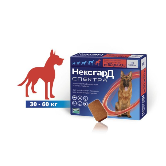 Нексгард Спектра (NexGard SPECTRA) 8 г на 30-60 кг XL таблетка от блох и клещей для собак (1 табл.)