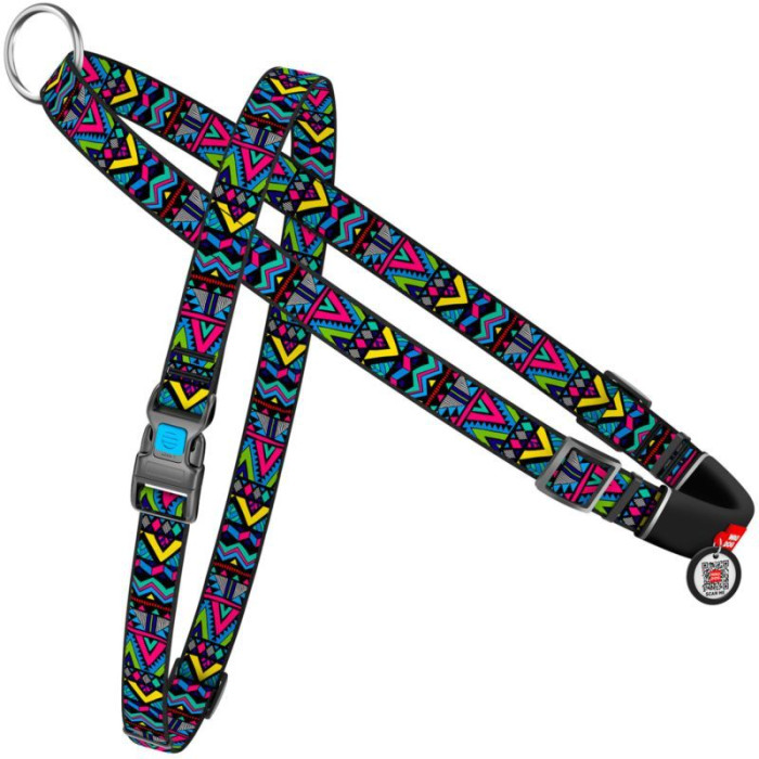 Нейлоновая шлея с ручкой для собак WAUDOG Nylon с QR паспортом, с рисунком Витраж S 45-60 см