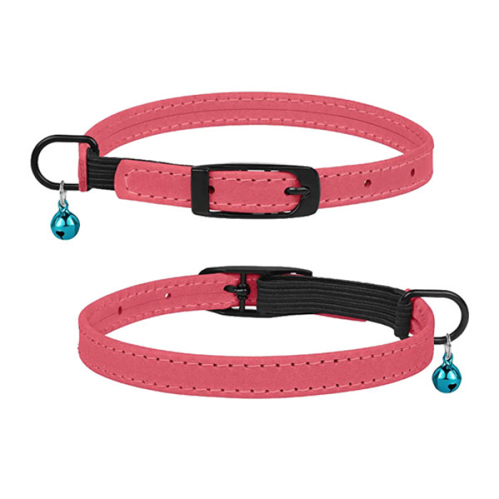 Ошейник для Кошек плоский кожаный Crazy с голубым колокольчиком Розовый, 2XS - 20-25 см