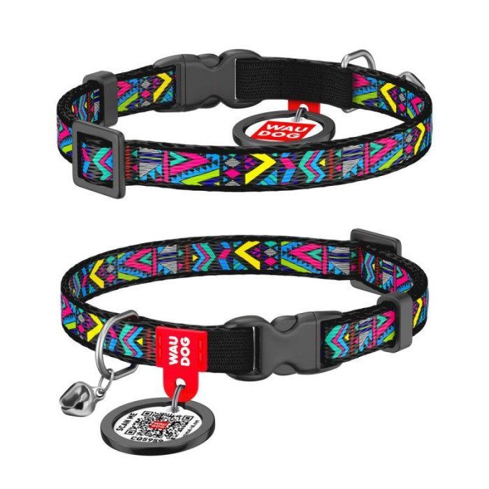 Ошейник для кота WAUDOG Nylon с QR паспортом, рисунок "Инди", пластиковая пряжка-фастекс XS 20-30 см