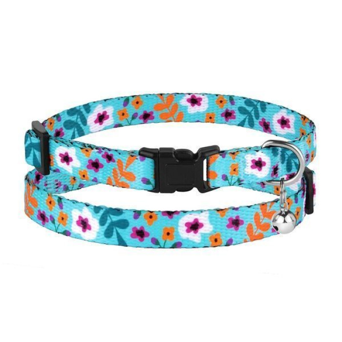 Ошейник для котов BronzeDog Urban с колокольчиком, принт Цветы, Ментол
