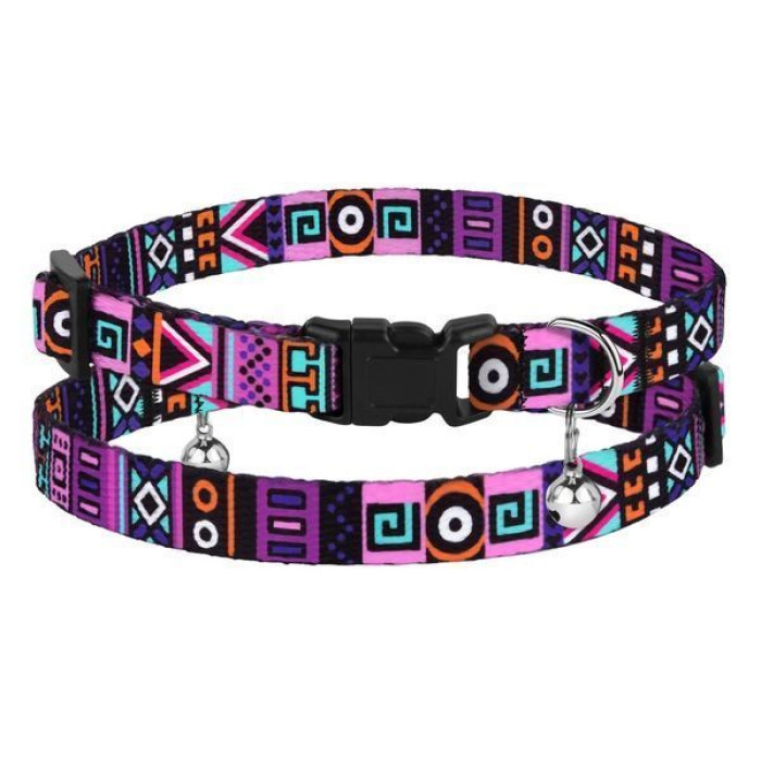 Ошейник для котов BronzeDog Urban с колокольчиком, принт Этнический, Фиолетовый