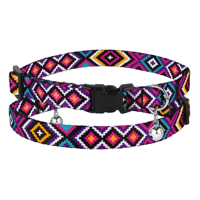 Ошейник для котов BronzeDog Urban с колокольчиком, принт Гуцульский, Фиолетовый