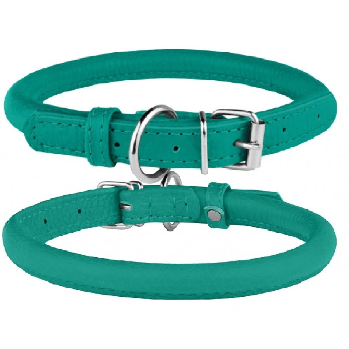 Ошейник для собак Barksi круглый кожаный Аквамарин M 33-41 см