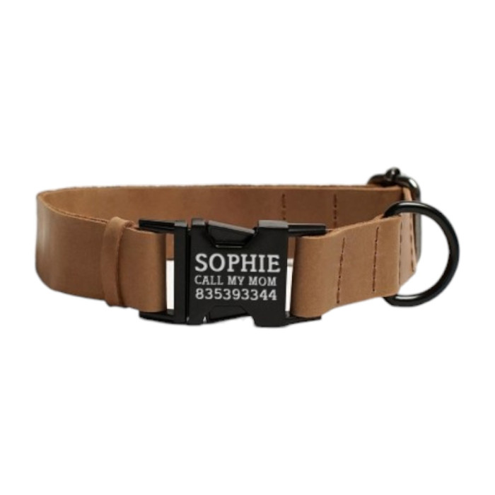Ошейник для собак BronzeDog Crazy кожаный плоский фастекс Бежевый S 30-40 см