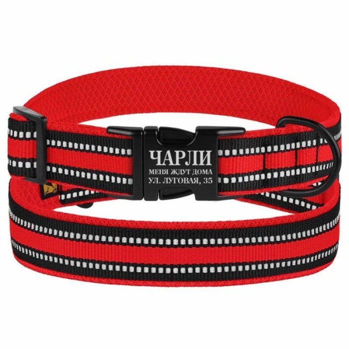 Ошейник для Собак BronzeDog Mesh c Металлической Пряжкой, Красный XL 43-66 см
