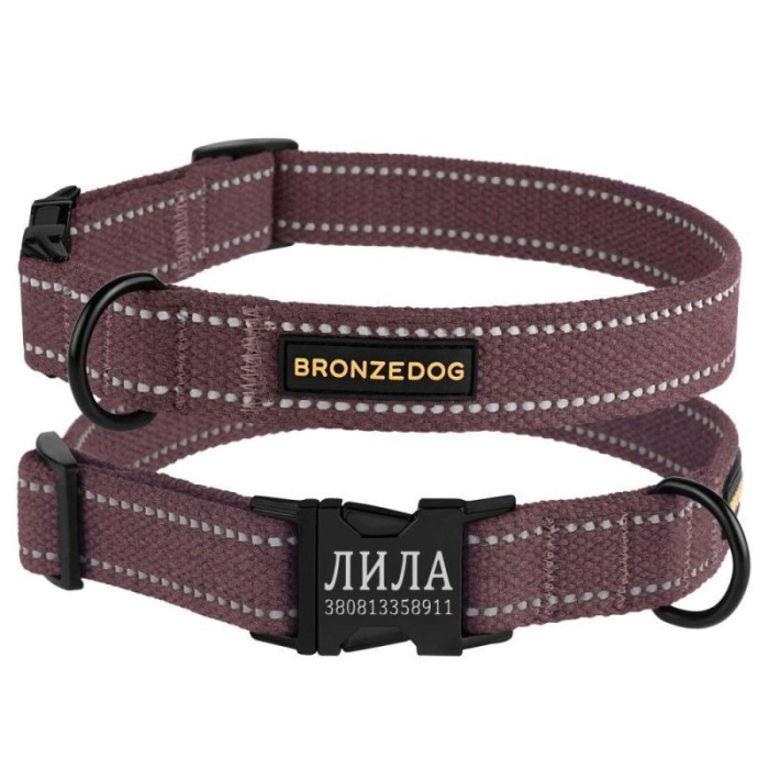 Светоотражающий ошейник для собак Bronzedog Cotton очень прочный, надежный и безопасный. Выполнен из натурального материала х/б самого высокого качества. Высокопрочная лента х/б, из которой изготовлен ошейник, не теряет цвет при стирке и не выгорает на солнце. Ошейник укомплектован прочной металлической пряжкой с возможностью нанесения гравировки.