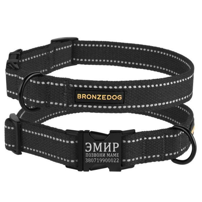 Светоотражающий ошейник для собак Bronzedog Cotton очень прочный, надежный и безопасный. Выполнен из натурального материала х/б самого высокого качества. Высокопрочная лента х/б, из которой изготовлен ошейник, не теряет цвет при стирке и не выгорает на солнце. Ошейник укомплектован прочной металлической пряжкой с возможностью нанесения гравировки.