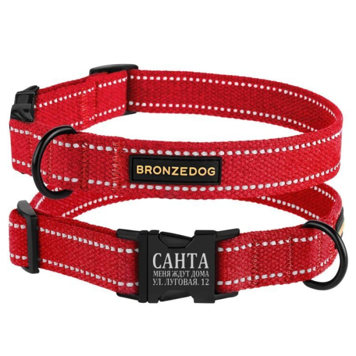 Светоотражающий ошейник для собак Bronzedog Cotton очень прочный, надежный и безопасный. Выполнен из натурального материала х/б самого высокого качества. Высокопрочная лента х/б, из которой изготовлен ошейник, не теряет цвет при стирке и не выгорает на солнце. Ошейник укомплектован прочной металлической пряжкой с возможностью нанесения гравировки.