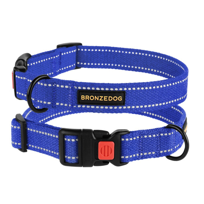 Ошейник для Собак Bronzedog Сotton Рефлекторный х/б Брезент Васильковый S 25-33 см