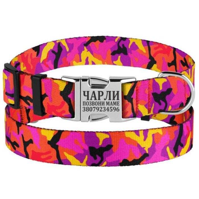 Ошейник для Собак BronzeDog Urban Camo Нейлоновый с Металлической Пряжкой, Розовый S 1,6 см 25-33 см
