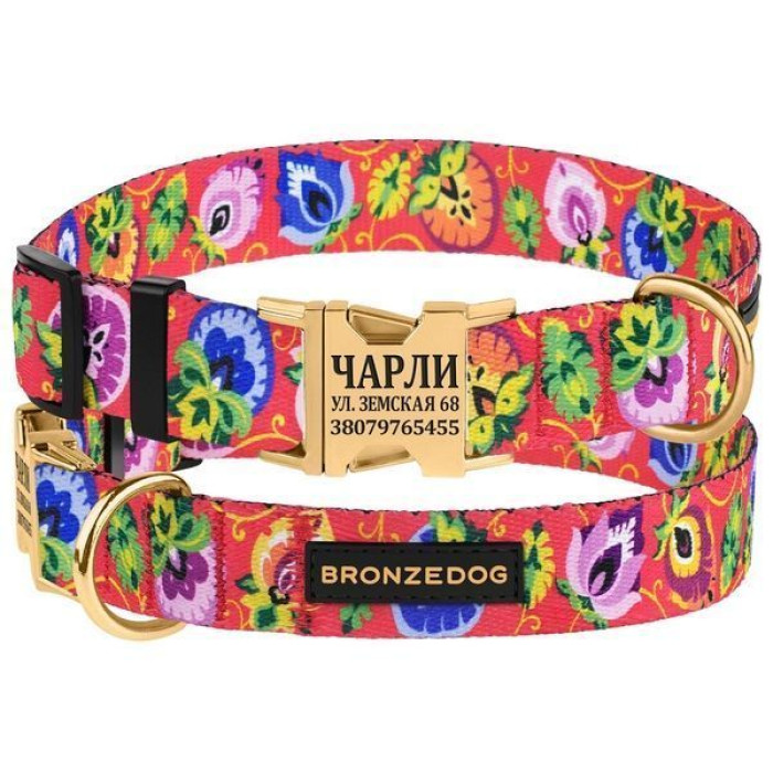 Нейлоновый ошейник для собак ТМ BronzeDog легкий, прочный и надежный. Он выполнен из материалов самого высокого качества. Высокопрочный нейлон, из которого изготовлен ошейник, не теряет цвет при стирке и не выгорает на солнце. Ошейник укомплектован прочной металлической пряжкой с латунированным покрытием и возможностью нанесения гравировки. Можно награвировать любую информацию, например: кличка домашнего животного, контактные данные, адрес, номер микрочипа и т.п. Текст наносится с помощью лазера, поэтому со временем он не стирается и не тускнеет. Этот ошейник мягкий на ощупь, гибкий и не боится воды. Он практичен и неприхотлив в уходе.
