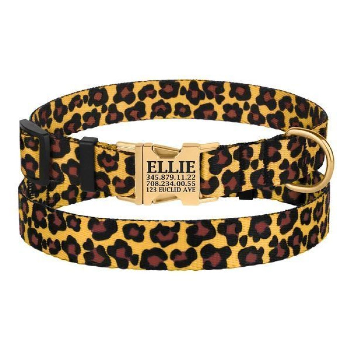 ОШЕЙНИК ДЛЯ СОБАК BRONZEDOG URBAN ЛЕОПАРД НЕЙЛОНОВЫЙ C МЕТАЛЛИЧЕСКОЙ ПРЯЖКОЙ ЗОЛОТИСТОГО ЦВЕТА