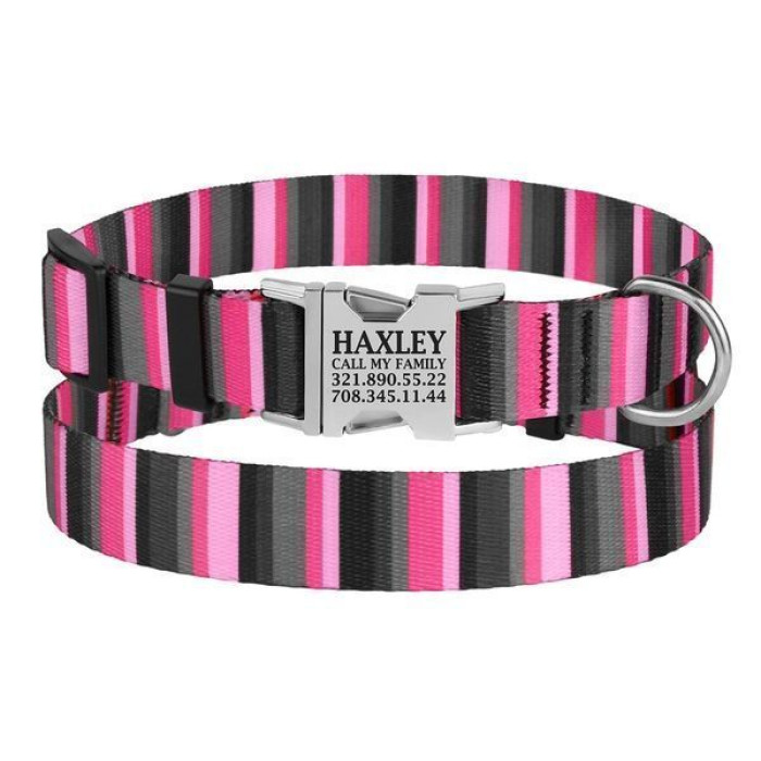 Ошейник укомплектован прочной металлической пряжкой с латунированным покрытием и возможностью нанесения гравировки.