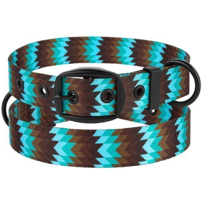 Ошейник для собак BronzeDog Urban Зигзаг нейлоновый c ременной пряжкой, Коричнево-Голубой