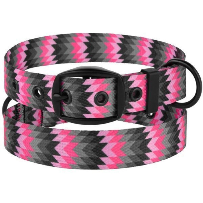 Ошейник для собак BronzeDog Urban Зигзаг нейлоновый c ременной пряжкой, Серо-Розовый