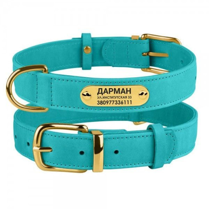 Ошейник для собак кожаный BronzeDog Crazy ментоловый L, 38-49 см