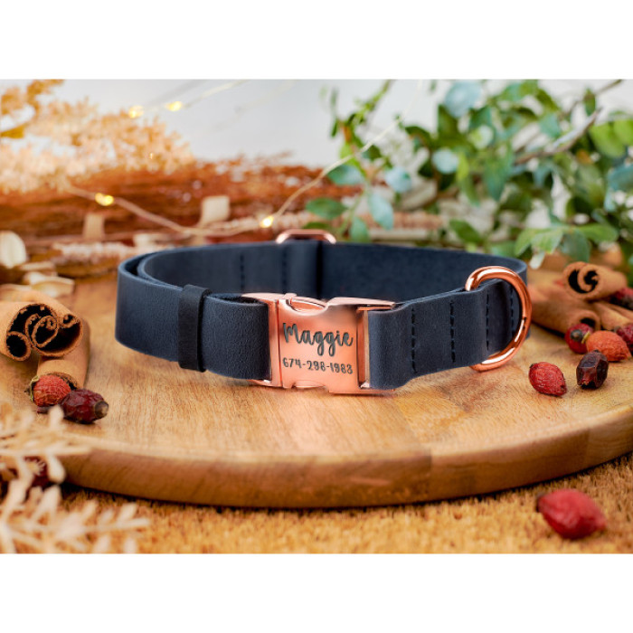 Ошейник для собак кожаный BronzeDog Crazy золотой фастекс, Темно-Синий, L 36-45 см