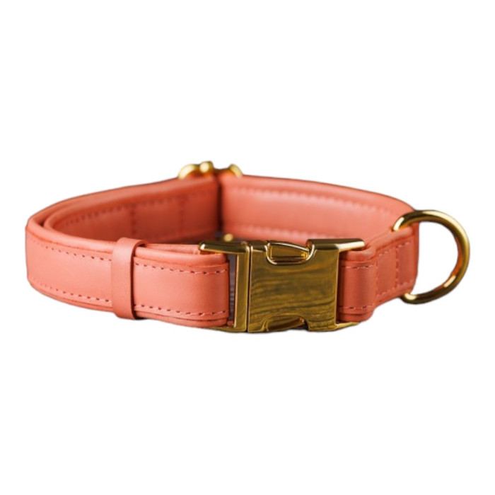 Ошейник для собак кожаный BronzeDog двойной Коралловый M 30-43 см