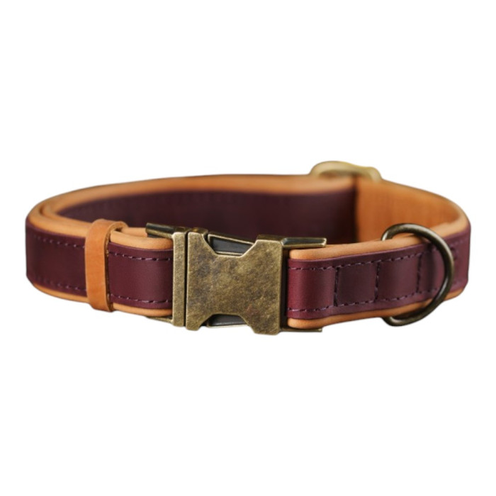 Ошейник для собак кожаный BronzeDog подклеенный Бордовый M 30-43 см