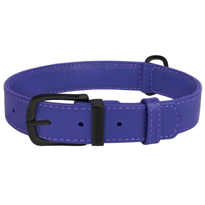 Ошейник для собак кожаный BronzeDog Premium без украшений, фиолетовый