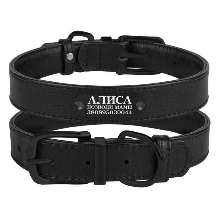 Ошейник для собак кожаный BronzeDog Premium с металлической фурнитурой, Черный 2XS 18-21 см