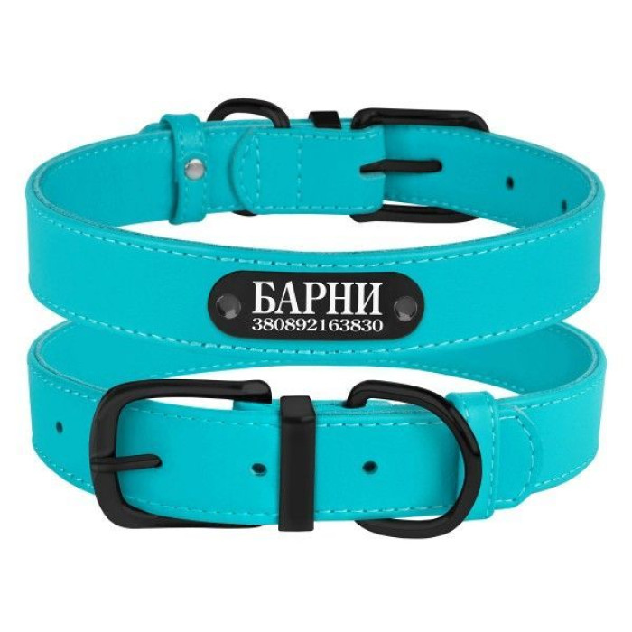 Ошейник для собак кожаный BronzeDog Premium с металлической фурнитурой, Голубой 2XS 18-21 см