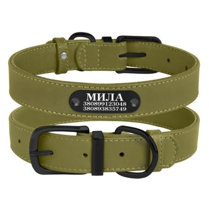 Ошейник для собак кожаный BronzeDog Premium с металлической фурнитурой, Оливковый 2XL 46-60 см