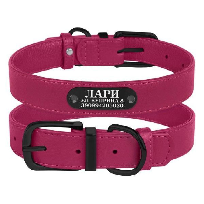 Ошейник для собак кожаный BronzeDog Premium с металлической фурнитурой, Розовый 2XS 18-21 см