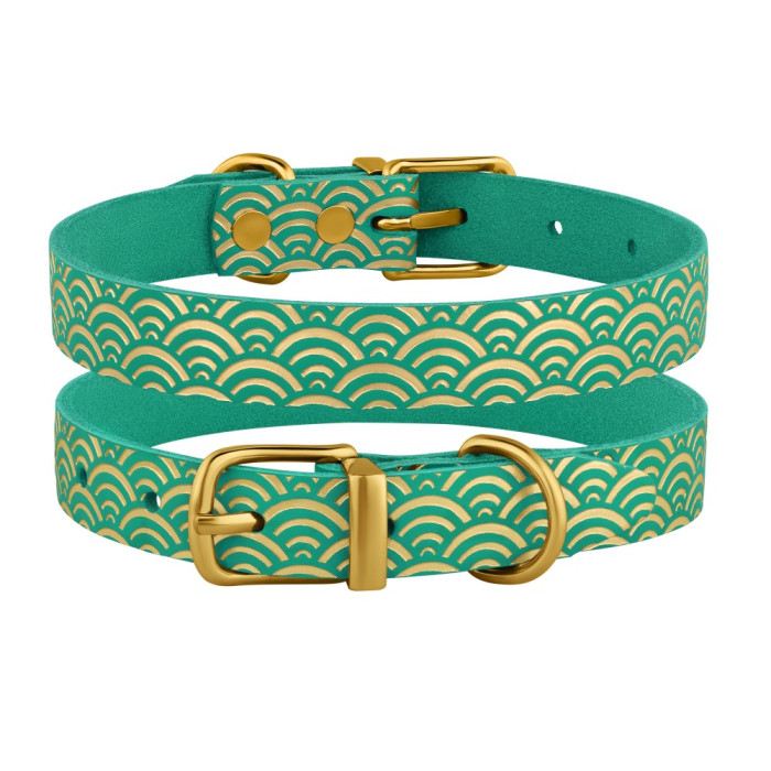 Ошейник для собак кожаный Classic одинарный с золотым тиснением Море Бирюзовый, S 23-30 см