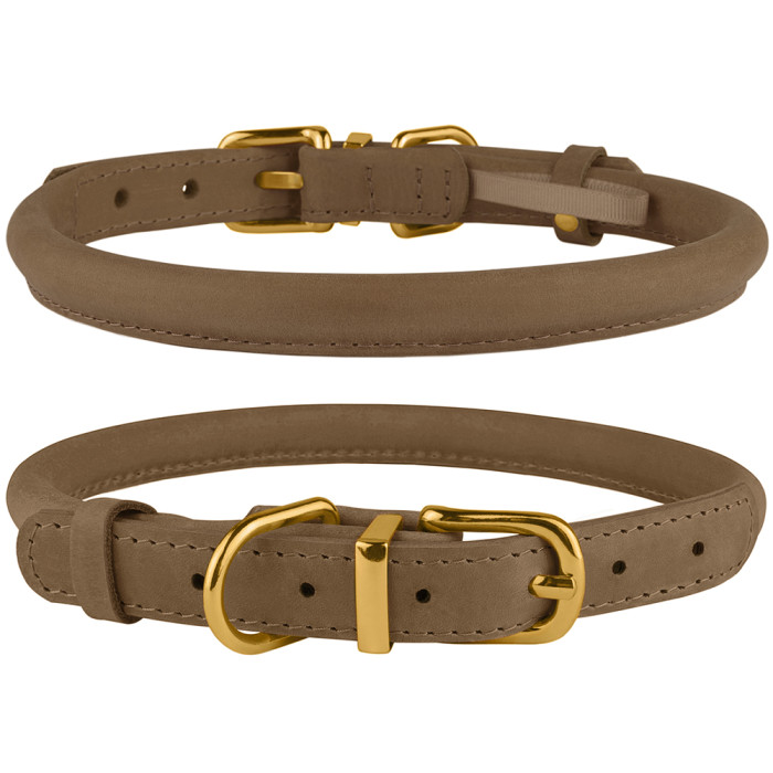 Ошейник для собак круглый кожаный BronzeDog Crazy Бежевый S, 23-33 см