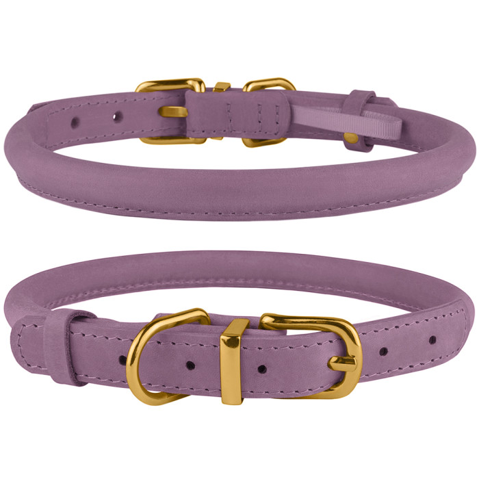 Ошейник для собак круглый кожаный BronzeDog Crazy Сиреневый XL, 43-53 см