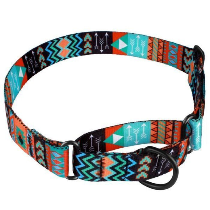 Ошейник для собак мартингейл BronzeDog Urban нейлоновый c металлической фурнитурой, Ацтеки S 30-40 см