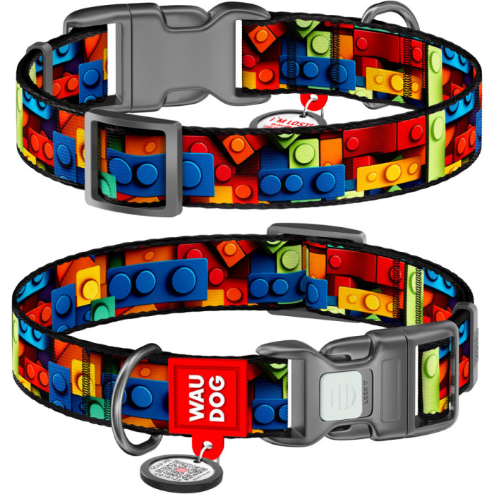 Ошейник для собак нейлоновый WAUDOG Nylon с QR паспортом, рисунок "Блоки", пластиковый фастекс S 25-35 см