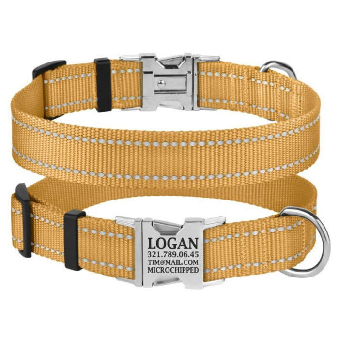 Ошейник нейлоновый для собак Active со светоотражением и металлической пряжкой, золотистый M 30-40 см