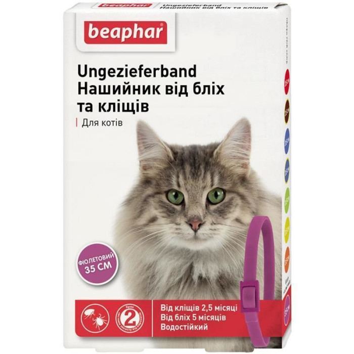 Ошейник от блох и клещей для котов Beaphar Flea&Tick Collar 35 см, фиолетовый