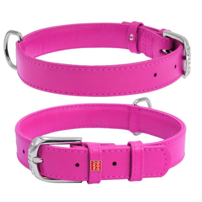 Ошейник WAUDOG Glamour без украшений, розовый XS1 18-21 см