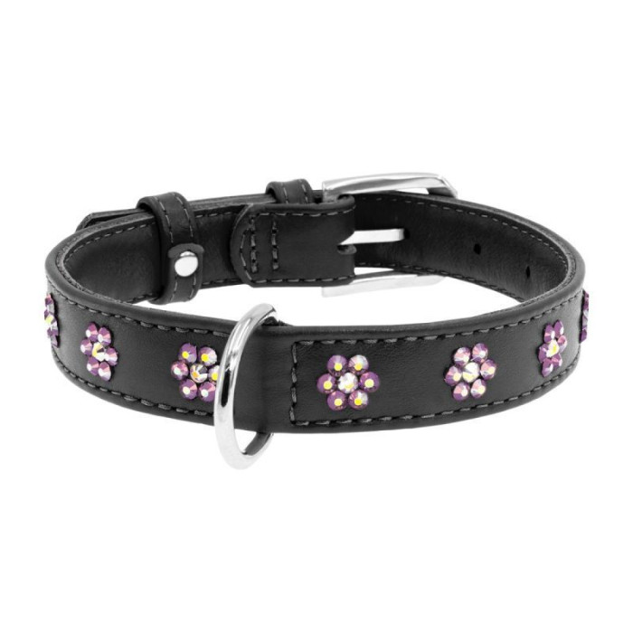 Ошейник WAUDOG Glamour с клеевыми стразами "Цветочек", черный XS1 18-21 см