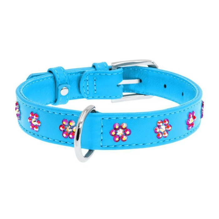 Ошейник WAUDOG Glamour с клеевыми стразами "Цветочек", голубой XS1 18-21 см