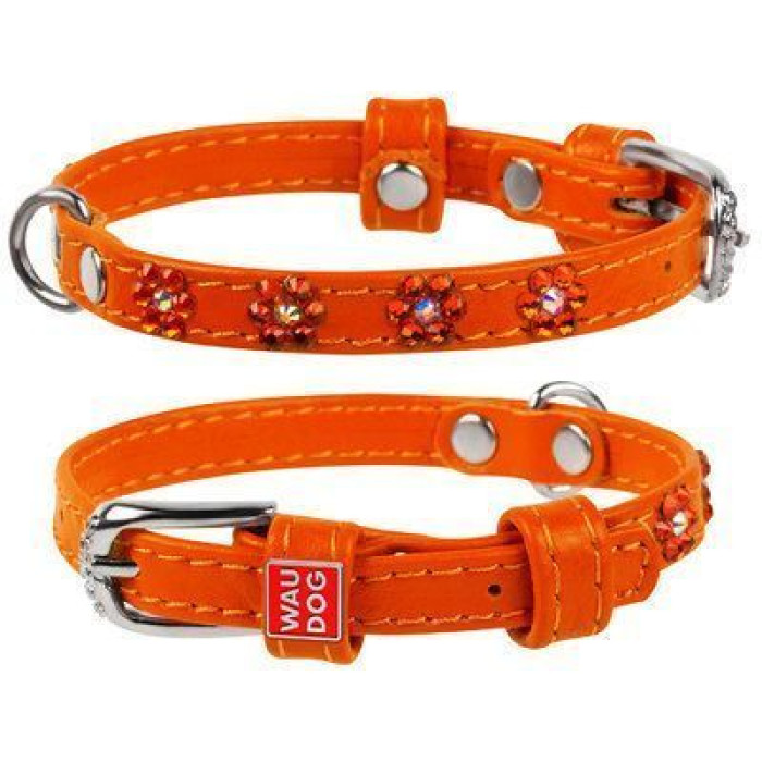 Ошейник WAUDOG Glamour с клеевыми стразами "Цветочек", оранжевый XS1 18-21 см