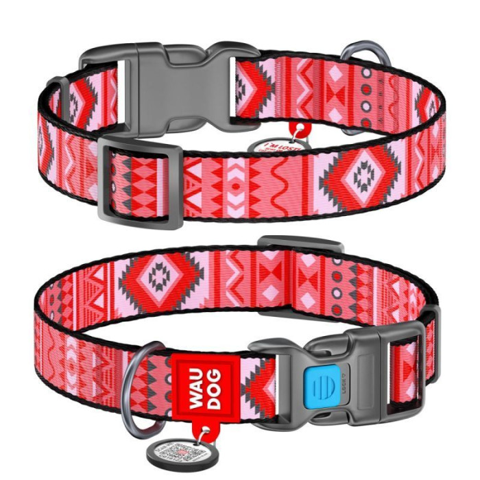 Ошейник WAUDOG Nylon с QR паспортом, рисунок "Этно красный", пластиковый фастекс S 25-35 см