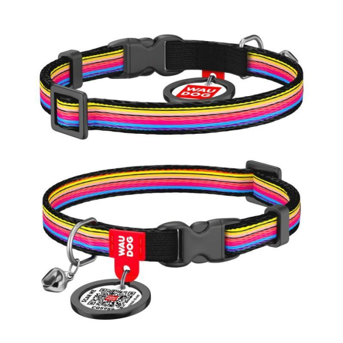 Ошейник WAUDOG Nylon с QR паспортом для котов и мелких собак, рисунок "Линии 1", пластиковый фастекс XS 20-30 см