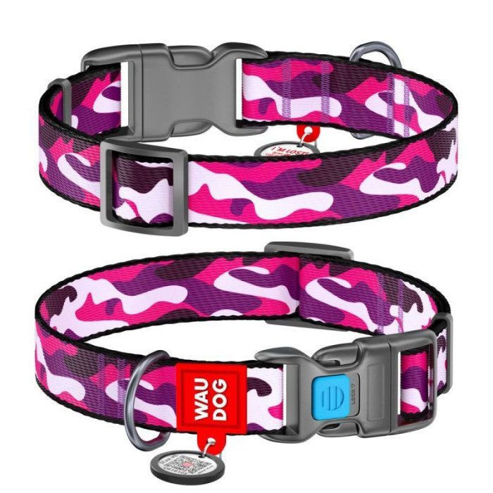 Ошейник WAUDOG Nylon с QR паспортом, рисунок "Розовый камо", пластиковый фастекс S 25-35 см