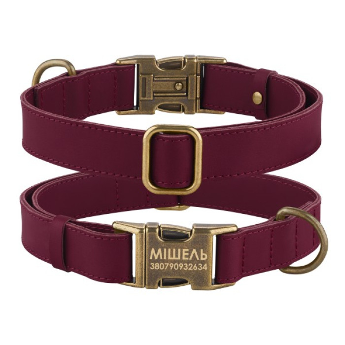 Ошейник для собак кожаный Antiq Бордовый S 25-33см
