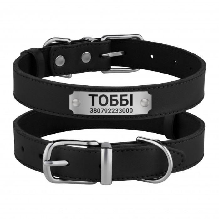 Этот ошейник может быть укомплектован адресником из стали на заклепках с возможностью нанесения до 4 строк текста, в зависимости от его размера. Текст наносится высокоточным лазерным оборудованием.