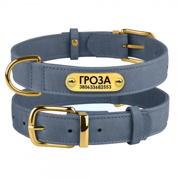 Ошейник доступен в цветах: бордовый, горчичный, коньячный, темно-коричневый, коричневый и темно-синий.
