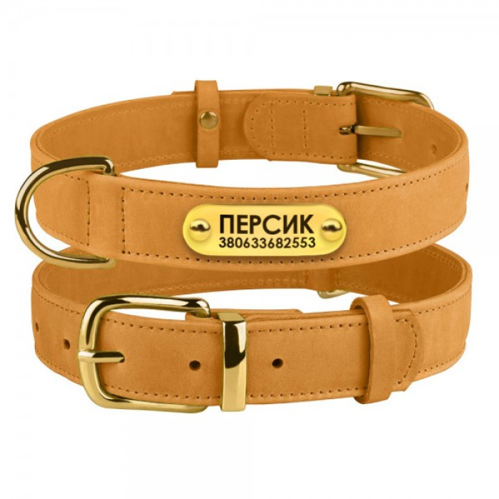 Ошейник для собак кожаный BronzeDog Crazy Голд M 30-39 см