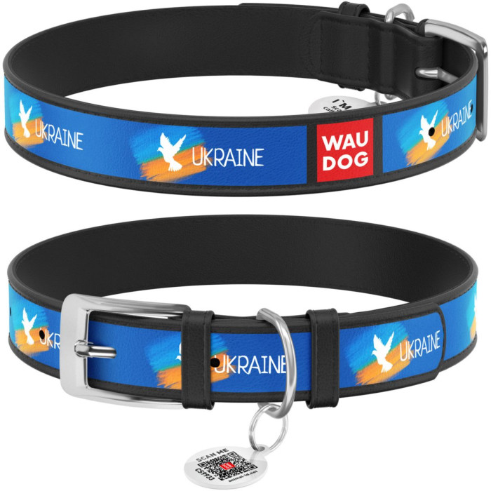 Ошейник для собак кожаный WAUDOG Design с QR паспортом, рисунок "Прапор" Черный XL 46-60см