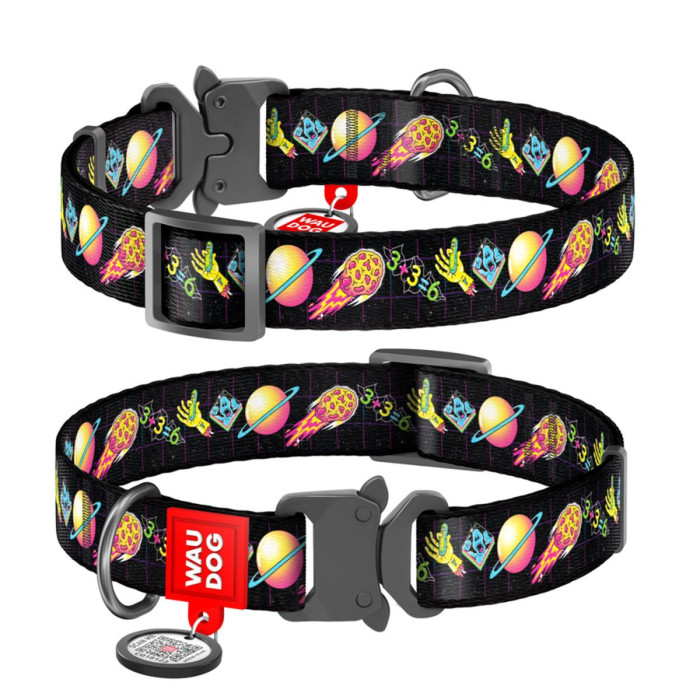 Ошейник для собак нейлоновый WAUDOG Nylon c QR-паспортом, рисунок "Рик и Морти 3", метал. пряжка-фастекс, L, 25 мм, 31-49 см