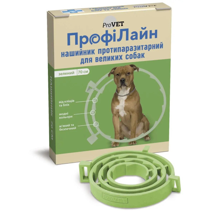Ошейник ПрофиЛайн антиблошиный для собак крупных пород (зеленый), 70 см
